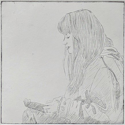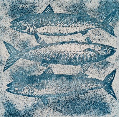 ‘Three Mackerels’, 16cm x 16cm, Coffee Lift Aluminium Etching on Hahnemühle Paper, 2024.‘Three Mackerels’, 16cm x 16cm, Coffee Lift Aluminium Etching on Hahnemühle Paper, 2024.‘Mum’, 12cm x 10cm, Hard Ground Etching on Hahnemühle Paper, 2024.