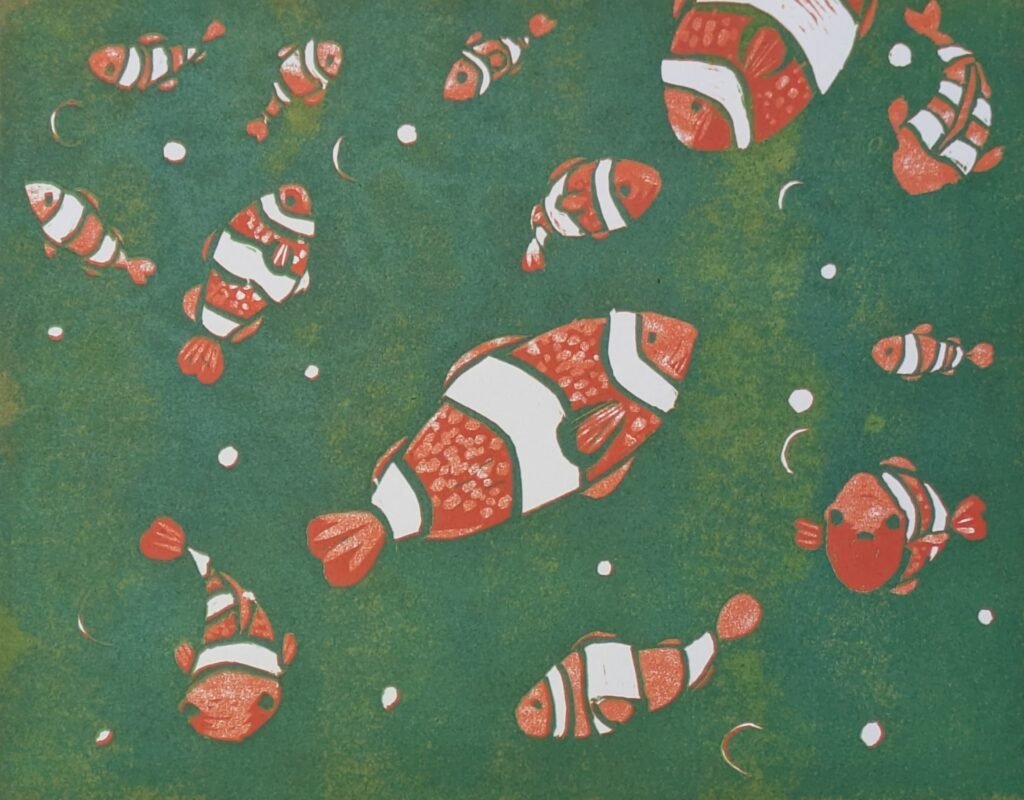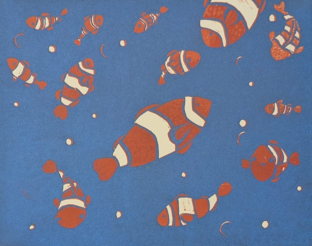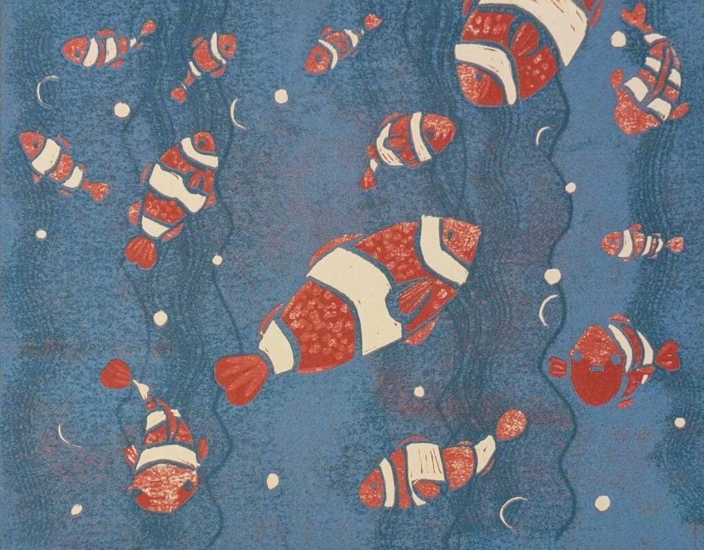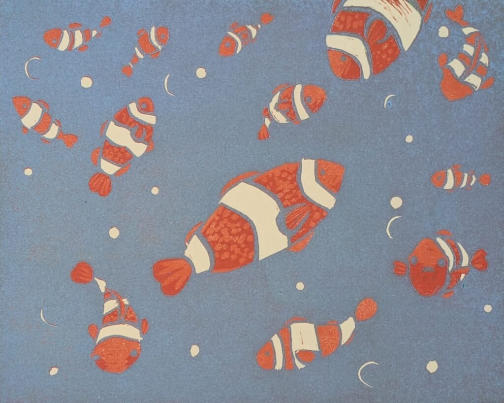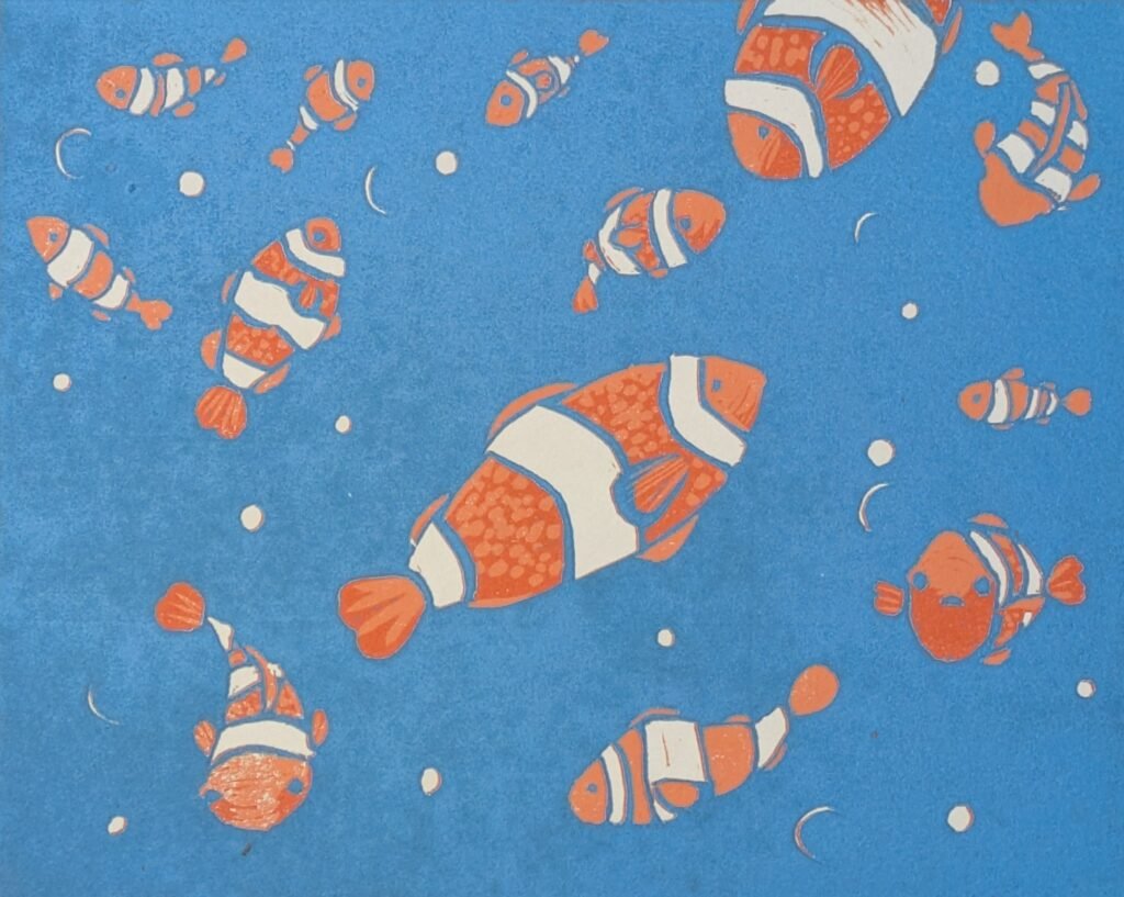 ‘School of Clownfish’, 20cm x 25cm, Reduction Linocut on Somerset Satin Paper, 2024.‘School of Clownfish’, 20cm x 25cm, Reduction Linocut on Rives Cream Paper, 2024.‘School of Clownfish’, 20cm x 25cm, Reduction Linocut on Rives Tan Paper, 2024.‘School of Clownfish’, 20cm x 25cm, Reduction Linocut on Rives Grey Paper, 2024.‘School of Clownfish’, 20cm x 25cm, Reduction Linocut on Rives Cream Paper, 2024.‘School of Clownfish’, 20cm x 25cm, Reduction Linocut on Rives Tan Paper, 2024.‘School of Clownfish’, 20cm x 25cm, Reduction Linocut on Somerset Satin Paper, 2024.‘School of Clownfish’, 20cm x 25cm, Reduction Linocut on Rives Cream Paper, 2024.‘School of Clownfish’, 20cm x 25cm, Reduction Linocut on Rives Grey Paper, 2024.