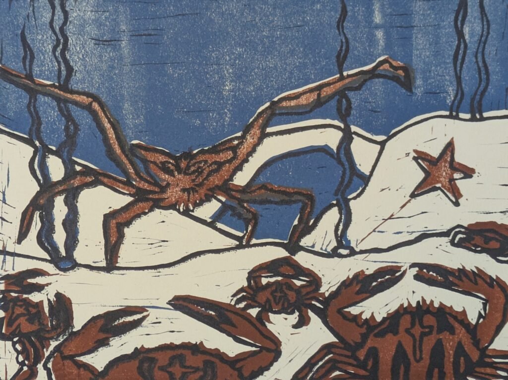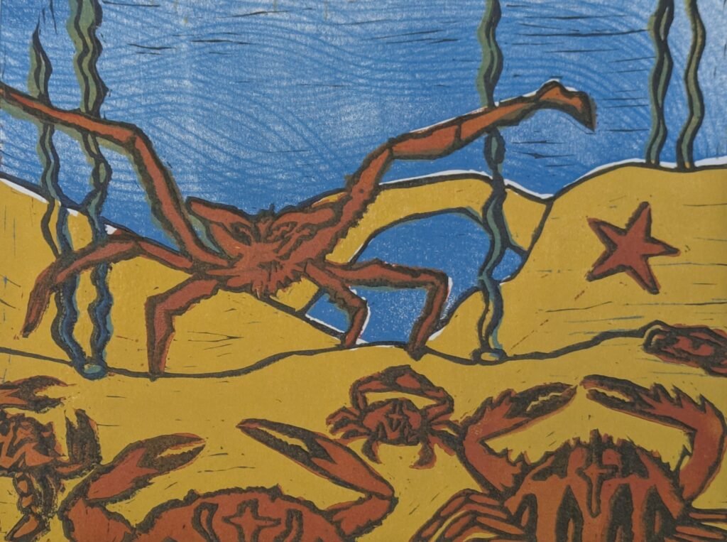 ‘The Crustacean Crusade’, 15cm x 20cm, Multiple Block Japanese Vinyl Print on Somerset Satin Paper, 2024.