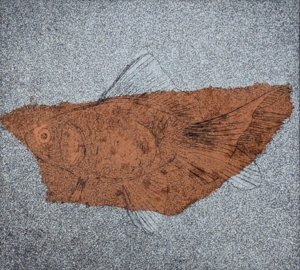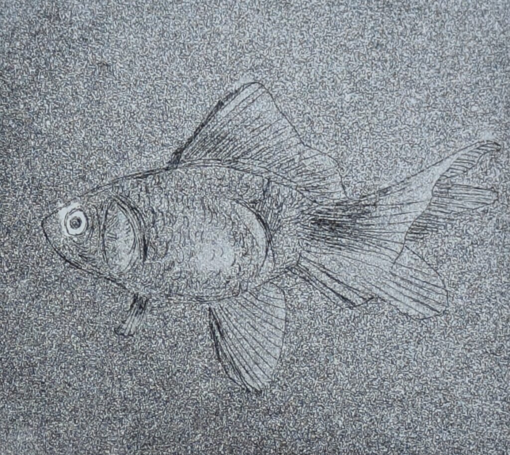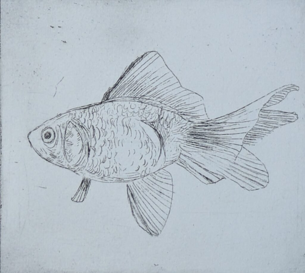 ‘Goldfish’, 9cm x 10cm, Hard Ground Etching on Hahnemühle Paper, 2024.‘Goldfish’, 9cm x 10cm, Chine Collée, Hard Ground Etching, and Aquatint on Hahnemühle Paper, 2024.‘Goldfish’, 9cm x 10cm, Hard Ground Etching and Aquatint on Hahnemühle Paper, 2024.