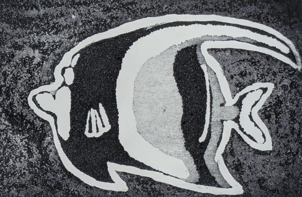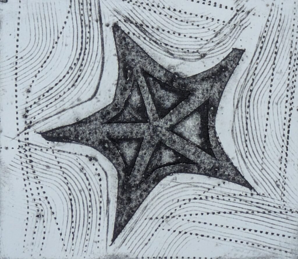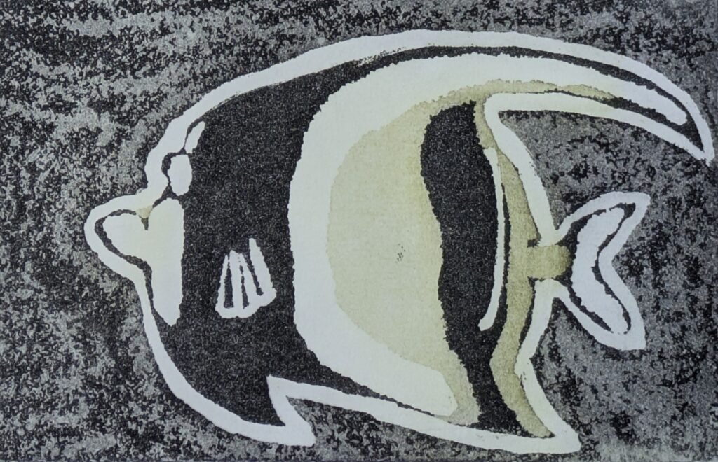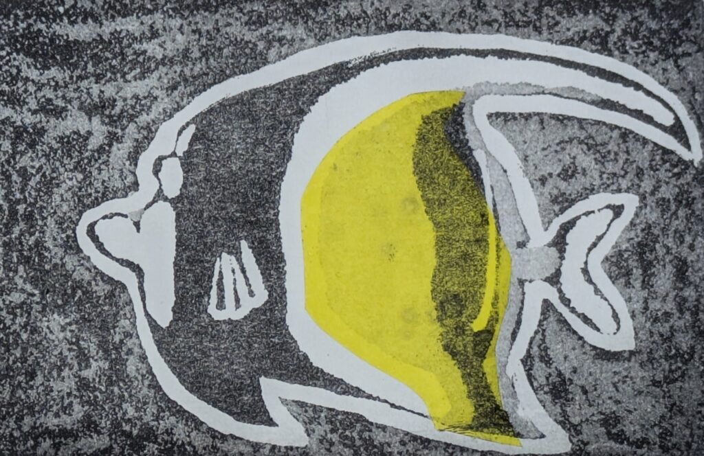‘Moorish Idol’, 9cm x 14cm, Chine Collée and Aquatint Etching on Hahnemühle Paper, 2024.‘Moorish Idol’, 9cm x 14cm, Aquatint Etching on Hahnemühle Paper, 2024.‘Moorish Idol’, 9cm x 14cm, Gouache and Aquatint Etching on Hahnemühle Paper, 2024.‘Moorish Idol’, 9cm x 14cm, Aquatint Etching on Hahnemühle Paper, 2024.‘Starfish’, 9cm x 10cm, Collagraph on Hahnemühle Paper, 2024.‘Starfish’, 9cm x 10cm, Collagraph on Hahnemühle Paper, 2024.