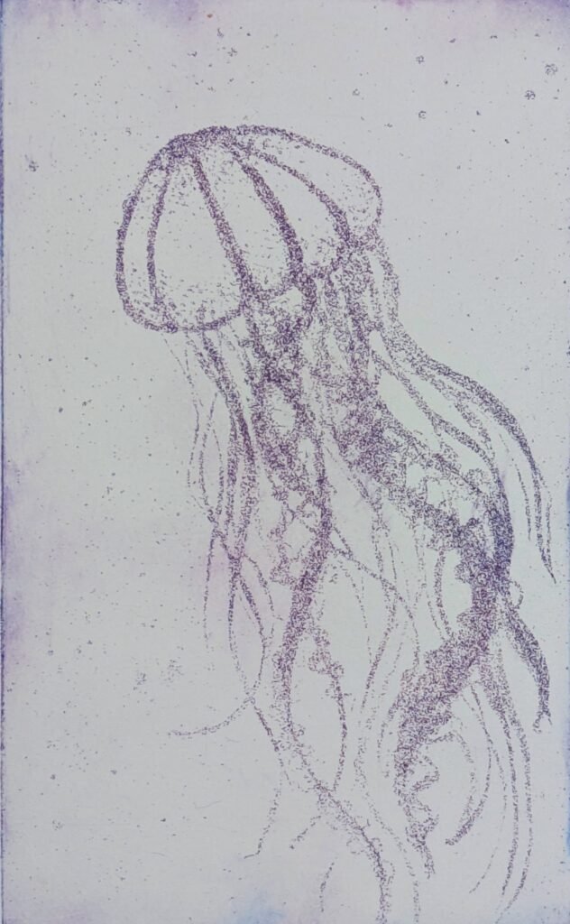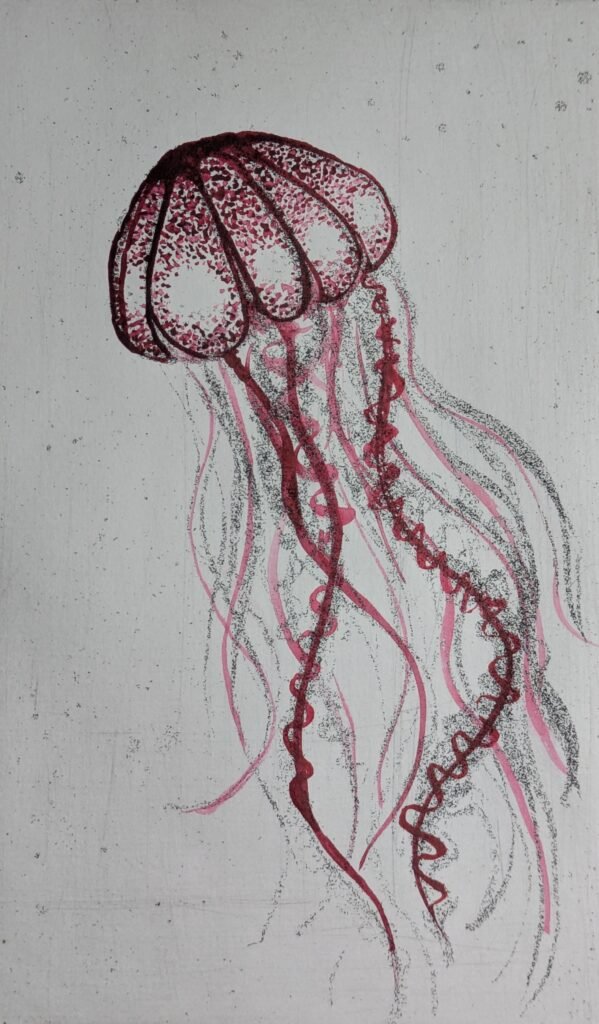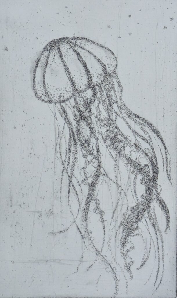 ‘Jellyfish’, 18cm x 11cm, Coffee Lift Etching on Hahnemühle Paper, 2024.